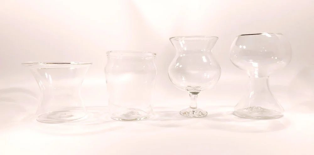 Giant versions of beer flight glasses are placed on this base. The size is an equation to the enlargement associated with pride. Each glass, made in collaboration with the inspiringly animated glassblower Jonathan Poirier, is the appropriate glassware for each kind of brew, keeping it true to beer. The clear glass, when filled is an introspection of the effect of humility on a human being. The drinker is forced to lower these glasses from the pedestal in order to ‘ground’ them.
