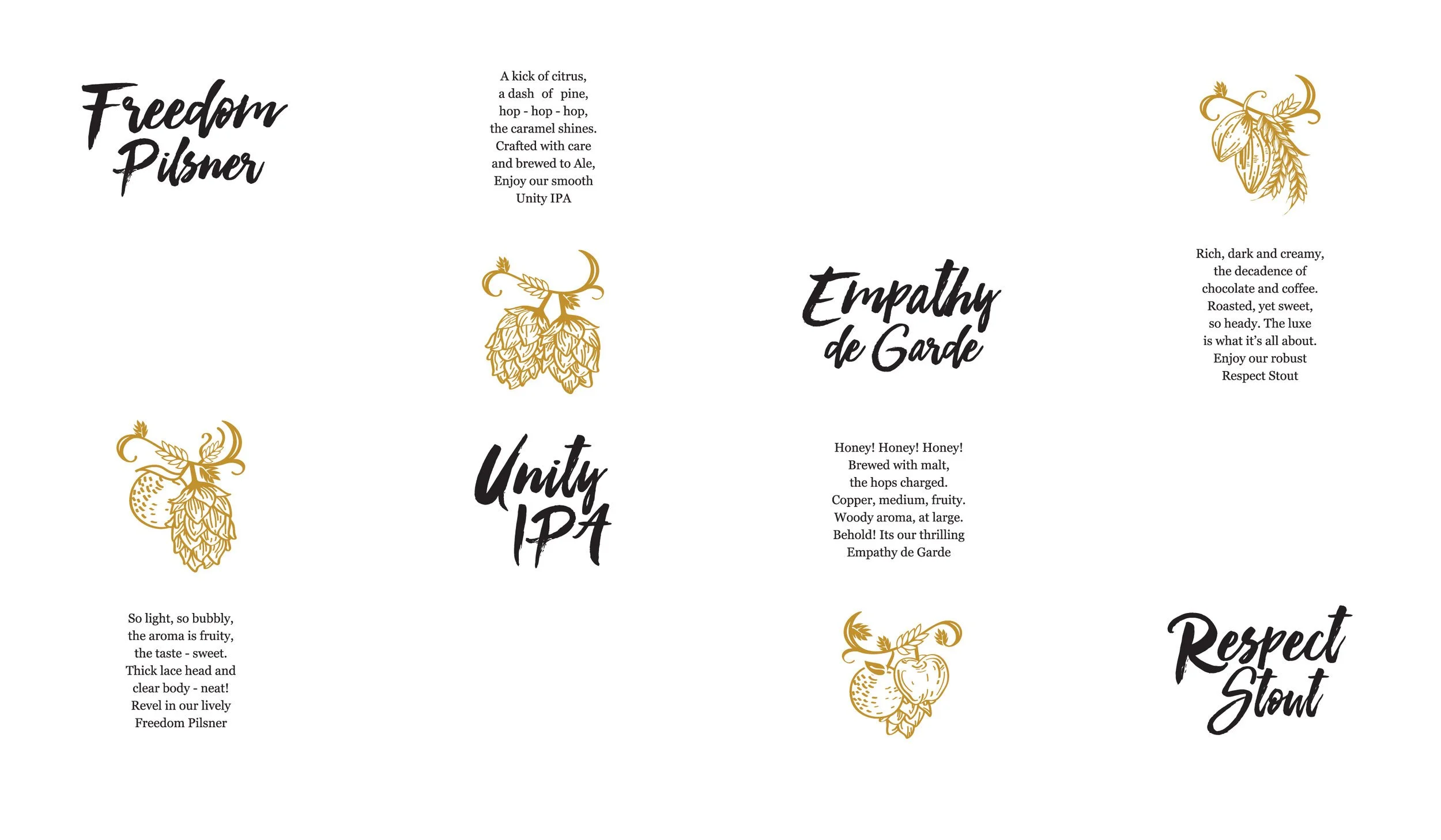 Based on the characters of the story, the beers themselves represent four values. Through beer tastings and primary research, each value is associated with a specific aroma, taste, color, texture and ABV%.