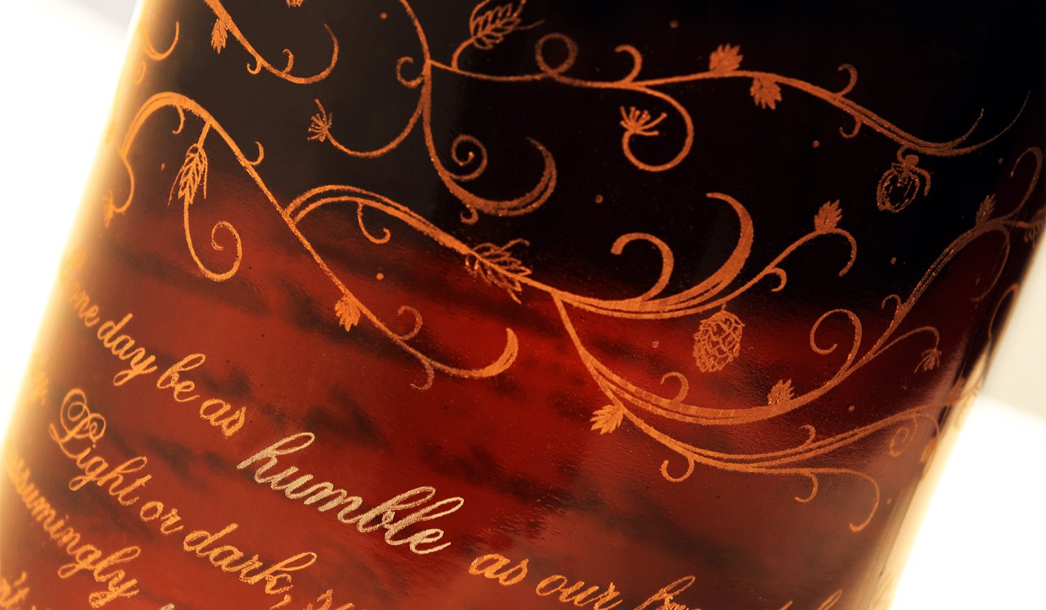 This second interaction takes the form of a growler, a symbol of craft brewing. Its large size resembles the ideology of the glasses. Growlers are often used to store beer for sharing. The text that wraps around the growler is an ode to beer. Its structure mimics the action of a spinning wheel. The user is forced to rotate the growler in order to read the entire text.